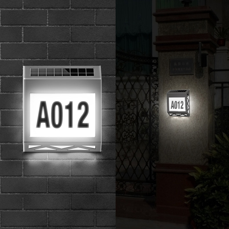 Usando a combinação de células solares e de baterias recarregáveis, somente uma lâmpada solar da porta é feita. Usa células solares para carregar duas baterias durante o dia, e ilumina automaticamente acima conduzido para iluminar o número da porta na noite, fornecendo a conveniência para visitantes. O diodo luminescente da lâmpada da casa solar é instalado em uma caixa pequena, e o número da casa do óleo é marcado no painel translúcido.